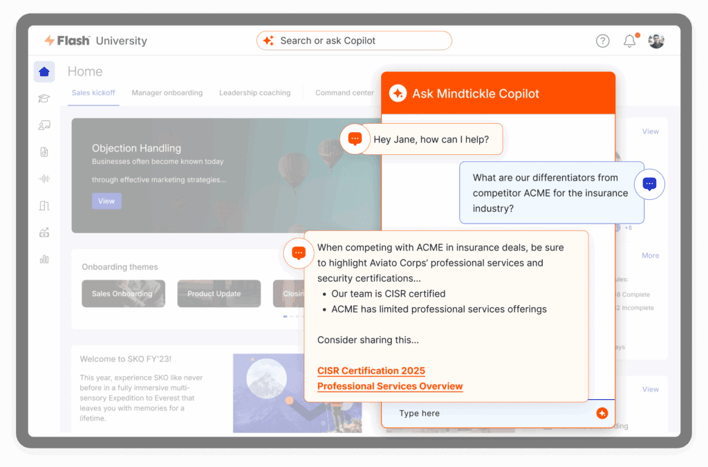 Mindtickle Copilot puts AI to work for your team. Create better buying experiences and accelerate deals with scalable, ethical and secure AI.