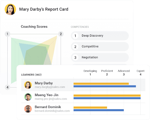 Skill coaching is most effective when it is individualized. Take the time to assess the skills of your reps. View enablement and training performance, review recorded calls, and ask your reps what areas they can improve upon. A sales readiness platform can help aggregate this data and track the readiness of your reps over time.