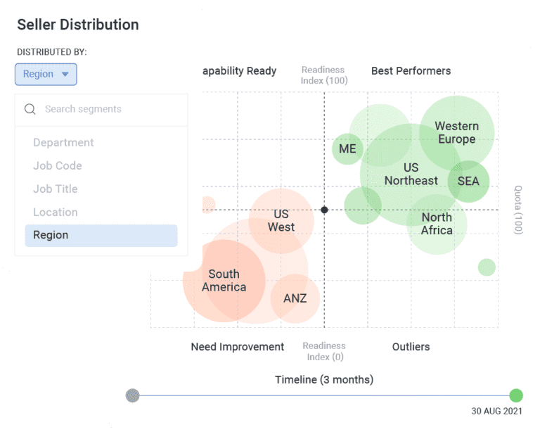 At the same time, our enablement team provides managers with a detailed report on which skills and competencies their team and individual reps need to develop each quarter. This data is provided via our Sales Readiness Index, a comprehensive way to benchmark which reps have the skills, will, and demonstrated in-field behaviors they need to drive deals home – or not.