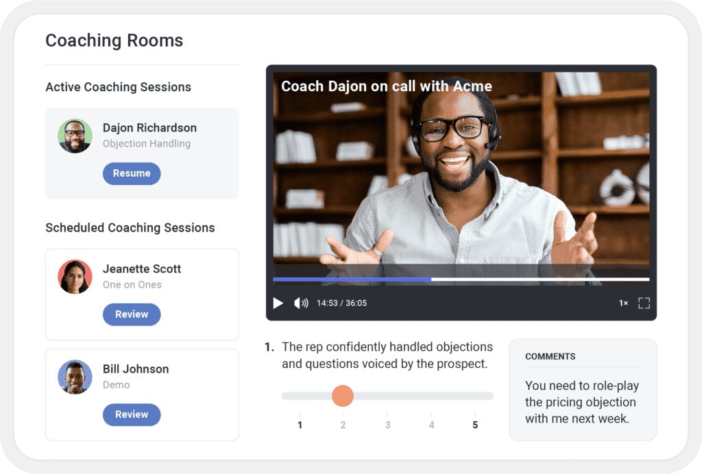 Into practicing via AI video role-plays and data-driven call coaching.