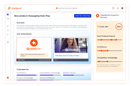 - Realistic conversations: Sellers engage with an AI persona using natural language, which allows for an immersive, realistic role play experience.