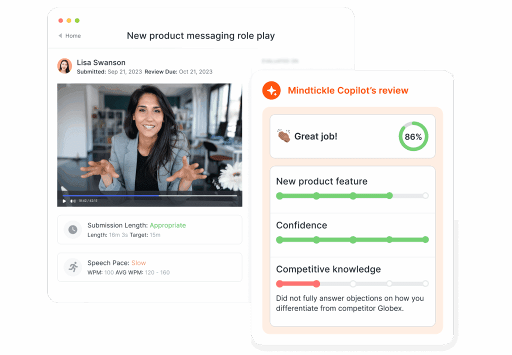 Sure, sales training lays the foundation. But without consistent opportunities to practice, even the best training won’t stick. Teams need a way to apply what they’ve learned in realistic scenarios that build confidence and skills.