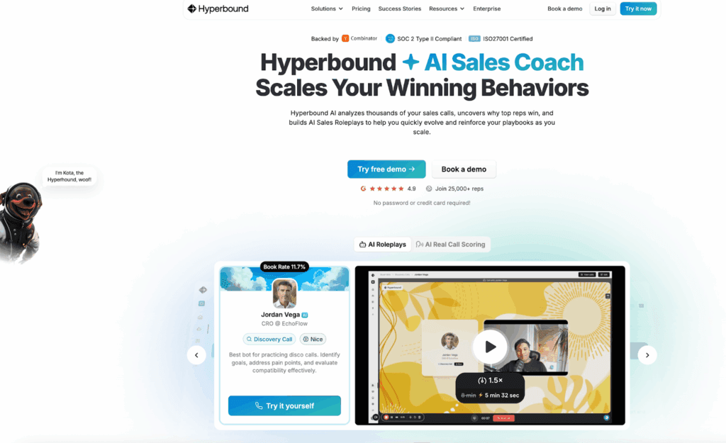Hyperbound is an AI Role Play platform that enables organizations to quickly launch realistic simulations based on ideal customer profile (ICP) descriptions. Sellers can master key skills and gain confidence, without putting deals at risk or overburdening sales managers.