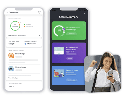 A one-size-fits-all approach runs the risk of under-preparing sellers in areas where they lack experience while boring and disengaging them in topics they’ve already mastered. According to McKinsey, high-performing companies are two times as likely to offer personalized training for their sales reps. While this may sound unattainable, the best sales readiness software uses a combination of rules and adaptive intelligence to personalize training to individual sellers during onboarding and well beyond into continuous training.