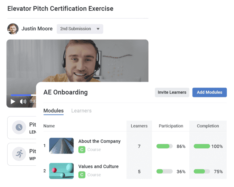 With a sales enablement platform like Mindtickle, you can build and deliver interactive learning experiences that engage reps and help them master the skills and knowledge they need to be successful, like: