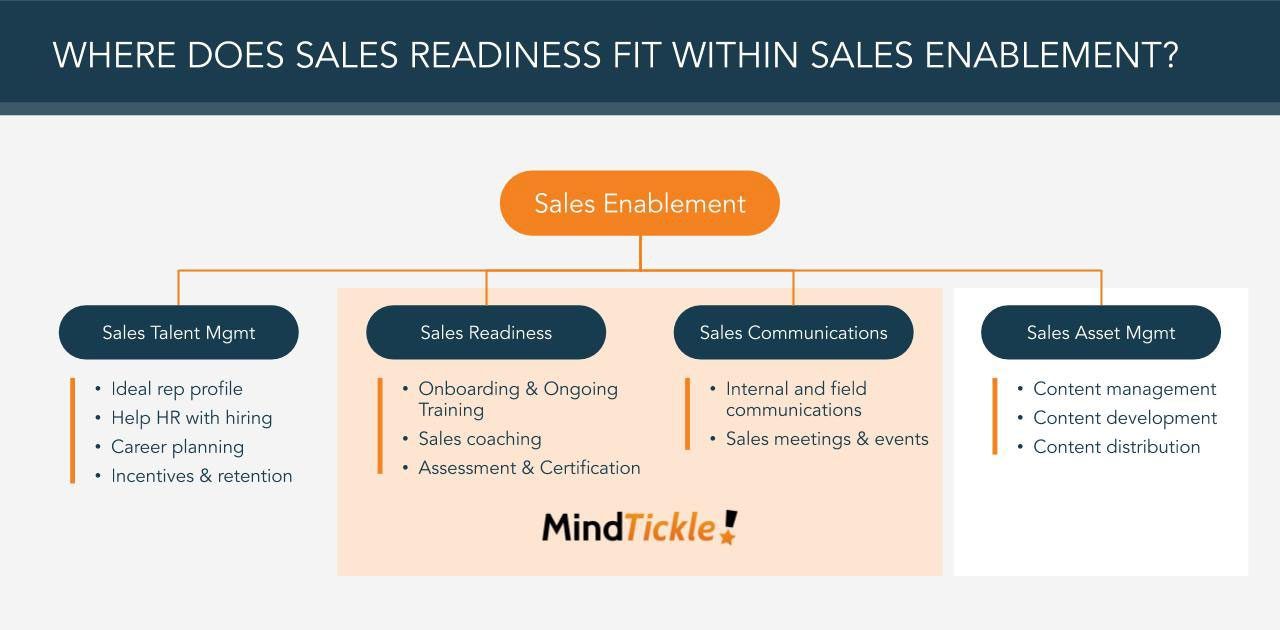 Sales readiness, on the other hand, is a critical part of a sales enablement program, as it focuses on outcome- and data-oriented results. It gives managers, teams, and organizations insights into performance, outcomes, and gaps in the sales team. Further, sales-ready reps have the confidence and tools necessary to think outside the box while delivering on the goals of the sales, marketing, and operations teams.