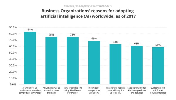 Forrester predicts that AI will disrupt your sales strategy this year. In fact, 84% of businesses believe AI will give them a competitive advantage and 69% believe their competitors will use it too.