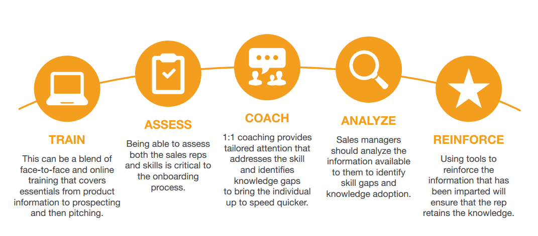 Onboarding is about making sure that the sales rep is truly sales-ready. It’s about understanding the industry, building detailed product knowledge, getting under the skin of the customer persona, learning how to qualify a lead, and pitching to them effectively. In short, onboarding is about learning “what to sell” and “how to sell”.