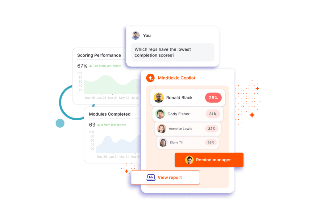 Copilot can efficiently analyze training and enablement reports in Mindtickle and produce succinct answers based on data. Empower all enablement and sales training professionals to derive quick and actionable insights from data, making informed decisions easier than ever.