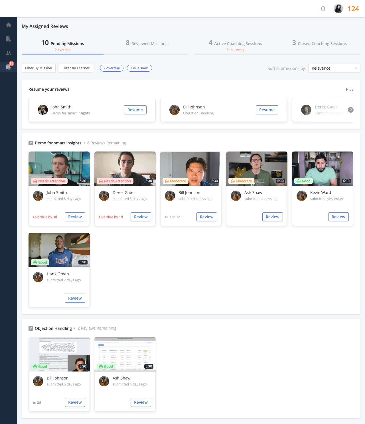 With these insights, managers can also identify and prioritize the seller who needs the feedback first, so that the manager can help them improve and get them to the required readiness levels.