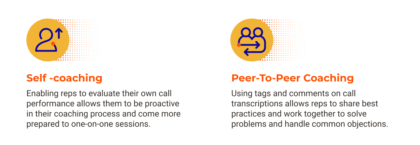 - Self coaching: Enabling reps to evaluate their own call performance allows them to be proactive in their coaching process and come more prepared to one-on-one sessions.