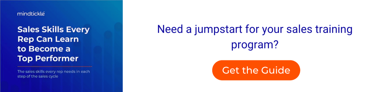 As a manager, it’s your responsibility to show sales reps the relationship between skill development and quota attainment. Ultimately, you want your sales reps to quickly see how new skills personally impact their sales efforts and be drawn to continually improve their success.