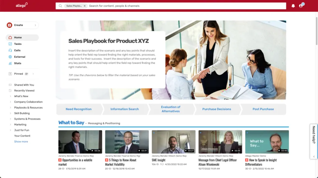 - A centralized repository to organize, share, track, and analyze all sales content and training.