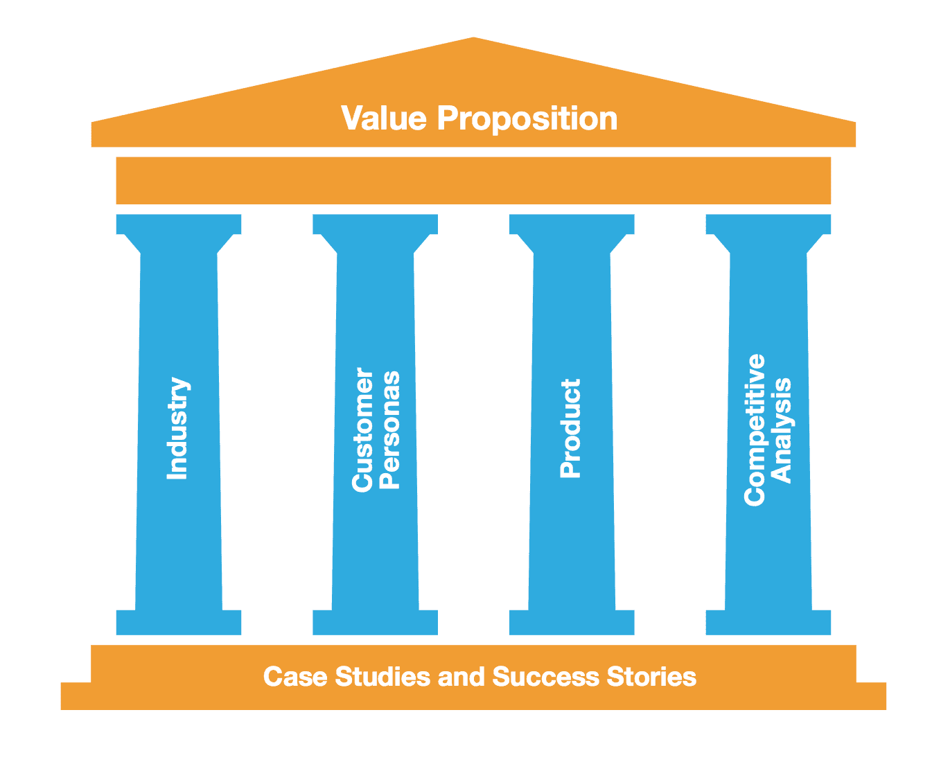These pillars support the articulation of the value proposition and stand on a firm foundation of case studies and success stories.