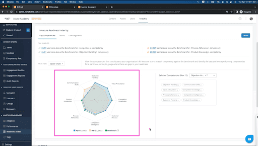 Improve sales coaching and readiness. Getting a complete picture of team skills, competencies, and shortcomings helps pinpoint who needs extra support, so you can proactively recommend exercises and content to fill knowledge gaps and create a team of top performers.