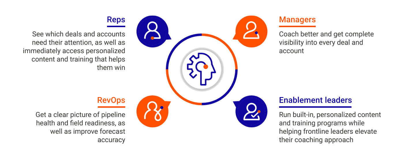 They need visibility, focus, and confidence that can only be provided through automated insights that help them identify which deals are a priority and the best next steps to take to drive that deal home. They need one source of truth for sales leaders, revenue operations, front-line managers, and reps.