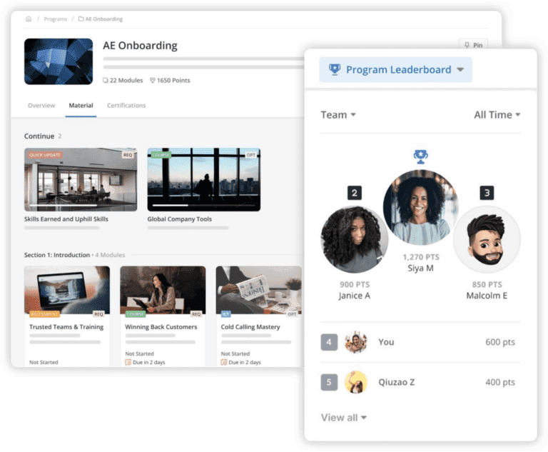 Optimize material for better win rates with content insights. - Accelerate the onboarding ramp process for new hires. In turn, this sets up new hires for success.