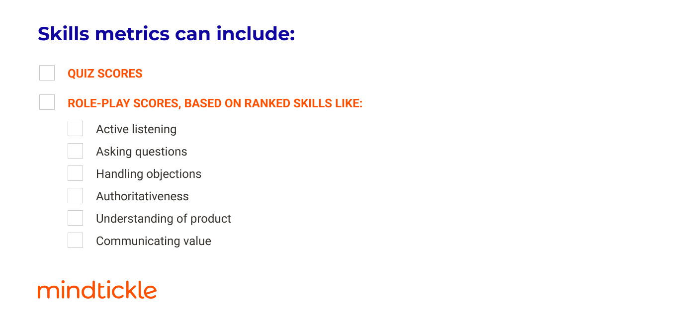 Beyond tracking knowledge, it’s critical to understand how reps are applying what they’ve learned after their training. Skills assessments provide insights into whether the learning sticks and is being used properly.