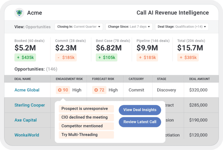 For example, content analytics can help you understand what content types improve deal outcomes. Also, revenue intelligence can help you understand the health of each deal and where there are risks. That way, your teams can take the appropriate action to improve outcomes. These insights can also inform better revenue forecasting.